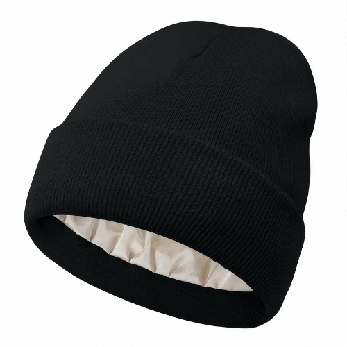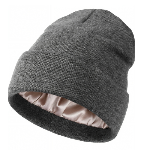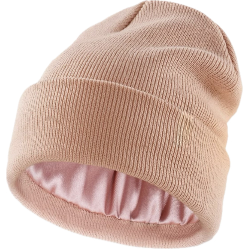 Satin Lined Beanie Reduce Frizz Winter Hats for Women-Men Silk Lining Soft Slouchy Warm Cuffed Less